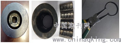改进思路,大胆尝试。2018年3月在厂科技科科长帮助下设计出锥度1:8,长度是45mm的卡子,由于19mm钢丝绳弹性变形量大(接近10mm)在实验过程中钢丝绳根本卡不住,之后我们把楔形卡牙由2瓣改为四瓣,在实验中钢丝绳在2吨左右脱开,实验失败。我们想光杆能卡住,是因为光杆强度大,不变形,如何不让钢丝绳变形呢,最后我们想到在钢丝绳内楔入胀针,3月22日室内实验,负荷达到3吨脱开。