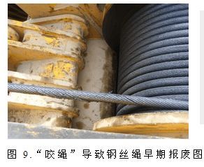 8、对于多层缠绕的设备,钢丝绳在使用中发生“咬绳”是不可避免的。建议在使用中对“咬绳”部位经常检查,并加强润滑,或者定期“窜绳”切断,错开“咬绳”部位。