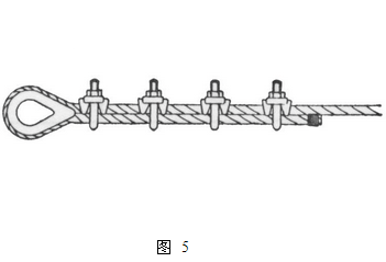 3、必须安装绳卡时,应按照图5的方法固定。绳卡间距为5-6倍钢丝绳直径。