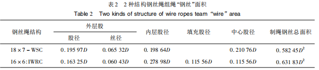 从表2中的数据可以看出18×7-WSC钢丝绳总钢丝面积相比16×6:IWRC钢丝绳总钢丝面积要小,从组绳钢丝面积大小可以得出16×6:IWRC的破断拉力高于18×7-WSC。