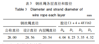 根据计算出的股径以及钢丝绳结构几何关系,通过绘图法得出填充股D,=3.27mm。考虑股间合理的间隙,各股直径大小进行适当调整0,调整后各股的直径见表3。