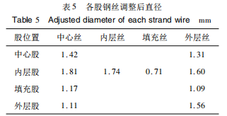 mm-2×1.57mm=1.18mm。考虑合理的钢丝间隙,对各股中钢丝分别进行适当调整,调整后各股中钢丝直径见表5。