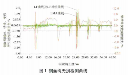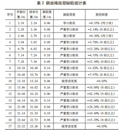 如对福抗药业的一台货梯钢丝绳利用EMT-C智能钢丝绳探伤仪进行无损检测的结果(见图1和表2)。