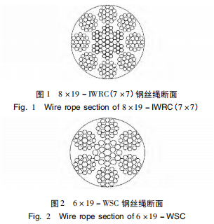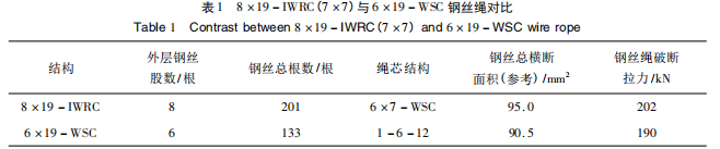 IWRC(7×7)与6×19-WSC的钢丝绳断面形状分别如图1、图2所示,数据对比结果见表1。