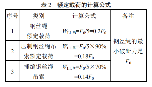 吊索具中钢丝绳额定载荷与该吊索具的额定载荷是有区别的,应注意区分。吊索具的结构型式和钢丝绳的最小破断拉力决定了两倍额定载荷的额定拉力试验时最终试验数值。