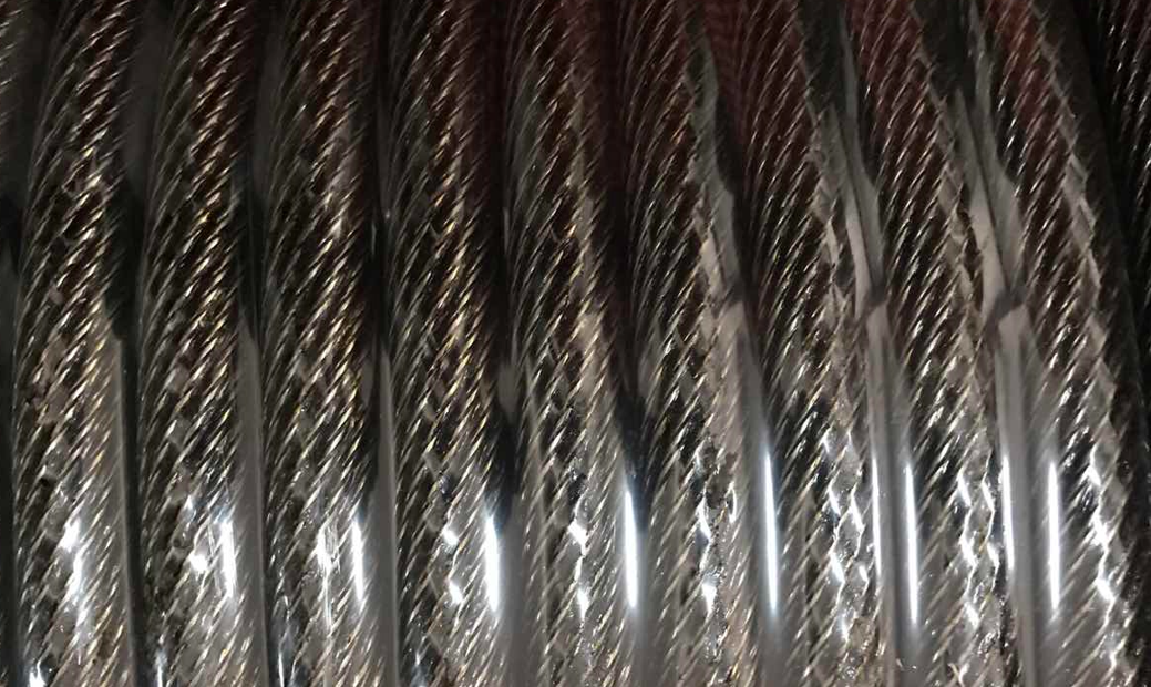 多层股不旋转钢丝绳已经不仅仅局限于表面钢丝是圆的了,现在的钢绳生产工艺技术早就能将圆钢丝压制成扁钢丝,而最常见的就是用于旋挖机专用绳的35W*K7、15*K7上面。